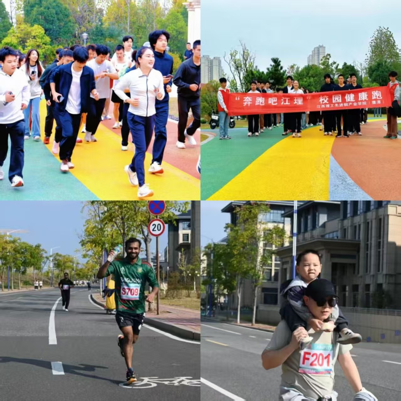 活动共设薪火传承路线5.8千米和拾月启航路线10.25千米两个赛道。参赛的学生们个个朝气蓬勃,他们的身影穿梭在校园之中,尽显青春活力;江理奔跑团成员们并肩前行,高喊“小小微马,轻松拿下”口号,用奔跑为校庆献礼,尽显少年英气。最引人注目的是教职工队伍,其中既有精神矍铄的年长教师,也有蹦蹦跳跳的家属小朋友,一长一幼的组合在这次活动中构成了一道温馨的风景线。师生共同奔跑,汗水挥洒在赛道上,青春洋溢在校园内,成为了江理一道靓丽的景色。