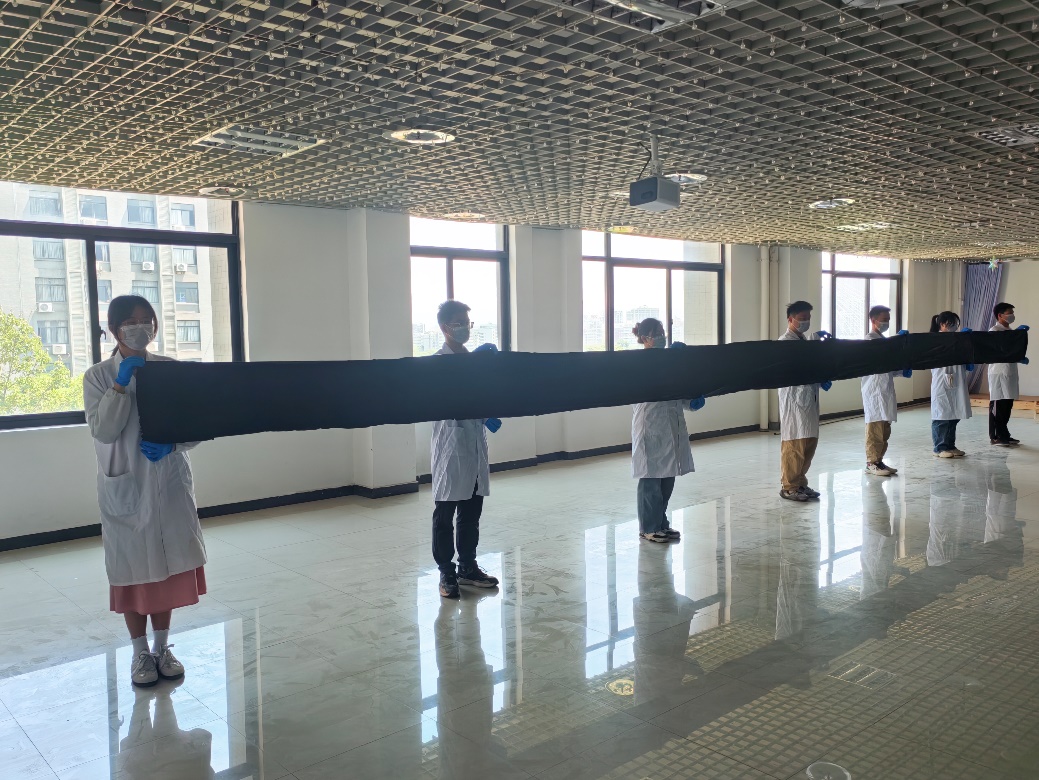 吴子平教授带领的碳纳米材料及柔性能源器件团队在柔性导电材料领域取得新进展,团队师生利用发现的碳纳米管连续体,通过层层组装,实现了结构定向的碳纳米管膜卷制造,所得膜长10.464 m,宽0.402 m,厚14 μm。经检索,它是国际上面积最大的碳纳米管膜,成功在2025年10月31日创下吉尼斯世界纪录,这为其工业应用奠定了基础。