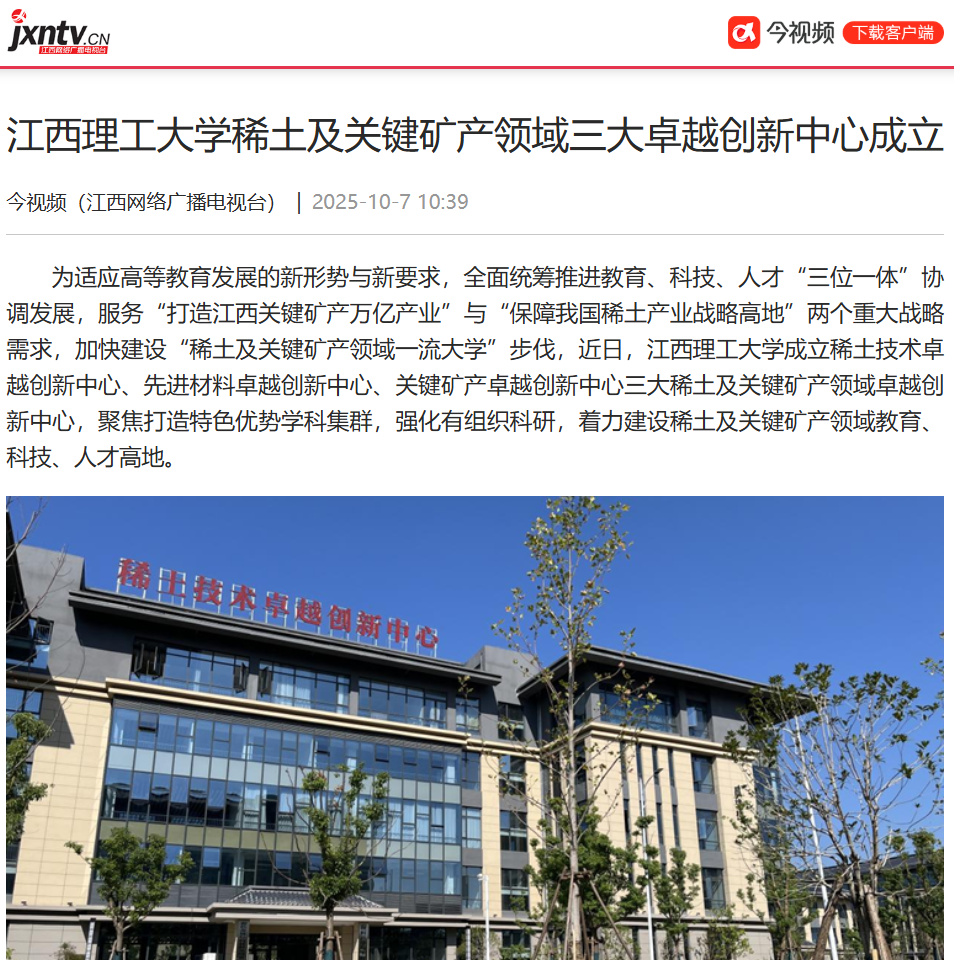 成立稀土技术卓越创新中心、先进材料卓越创新中心、关键矿产卓越创新中心三大稀土及关键矿产领域卓越创新中心,聚焦打造特色优势学科集群,强化有组织科研,着力建设稀土及关键矿产领域教育、科技、人才高地。