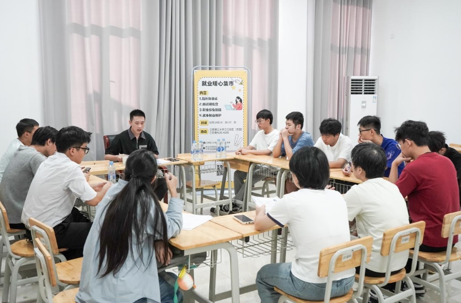 招生就业处联合校团委在三江校区东园三实楼举办“就业暖心集市”活动。活动以“精准服务,暖心助航”为宗旨,精准对接学生需求,整合简历优化、面试指导、就业权益维护咨询及职业形象拍摄等多项服务,为学子搭建起“一站式”就业帮扶平台,以全方位的就业指导服务为毕业生求职赋能增效。