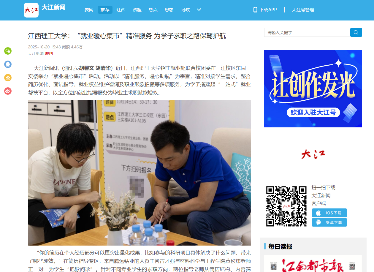 “你的简历在个人经历部分可以更突出量化成果,比如参与的科研项目具体解决了什么问题、带来了哪些成效。”在简历指导专区,来自腾远钴业的人资主管古才强与材料科学与工程学院黄松炜老师正一对一为学生“把脉问诊”。针对不同专业学生的求职方向,两位指导老师从简历结构、内容筛选、语言表达等方面提出个性化修改建议,帮助学生摆脱“模板化”简历困境,让个人优势与岗位需求精准匹配。学生陈鸿表示,“之前投出的简历石沉大海,经过老师指导才发现问题所在,这样的针对性辅导太实用了。”