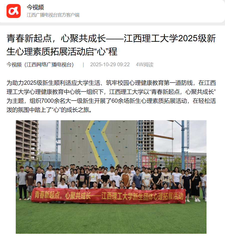 心理健康教育中心主任郭修凤表示:“此次心理素质拓展活动不仅帮助新生尽快熟悉大学学习生活环境,还引导他们在互动协作中学会释放压力、调节情绪。学校还将陆续推出武术体验训练营、读书分享会等多样化的心理支持活动,陪伴每一位同学在江理向阳生长、勇敢追梦。”(文/黄传昊 图/邹江维)