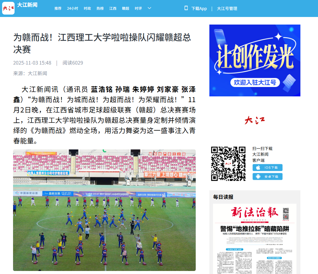 啦啦操队为赣超总决赛量身定制并倾情演绎的《为赣而战》燃动全场,用活力舞姿为这一盛事注入青春能量。