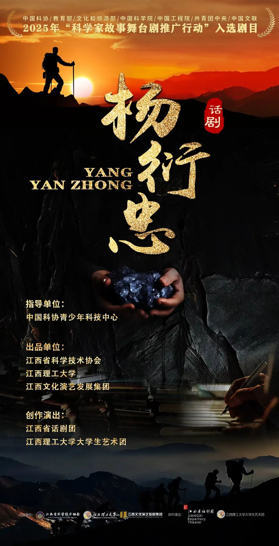 带来“科学家故事舞台剧推广行动”入选剧目《杨衍忠》。谨以此剧,回顾杨衍忠先生为祖国地矿事业奉献的一生,致敬他为党为人民、投身地质工作、坚持不懈的崇高精神。