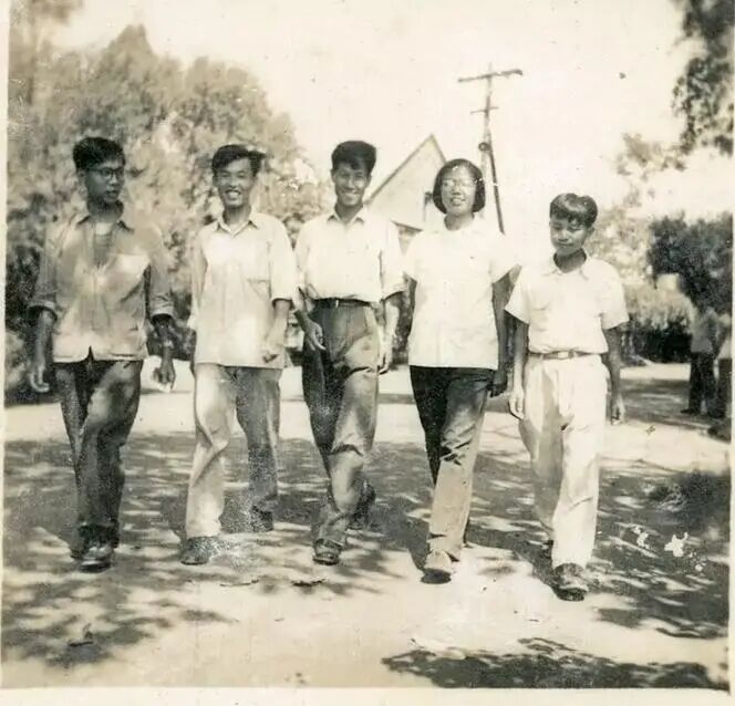 杨衍忠(左一)在北京煤炭工业学院学习期间到河北井陉实习时与师友合影