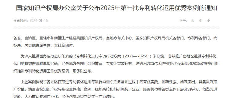 近日,国家知识产权局公布了20个2025年第三批专利转化运用优秀案例(专利产业化优秀案例)名单,免费成人网