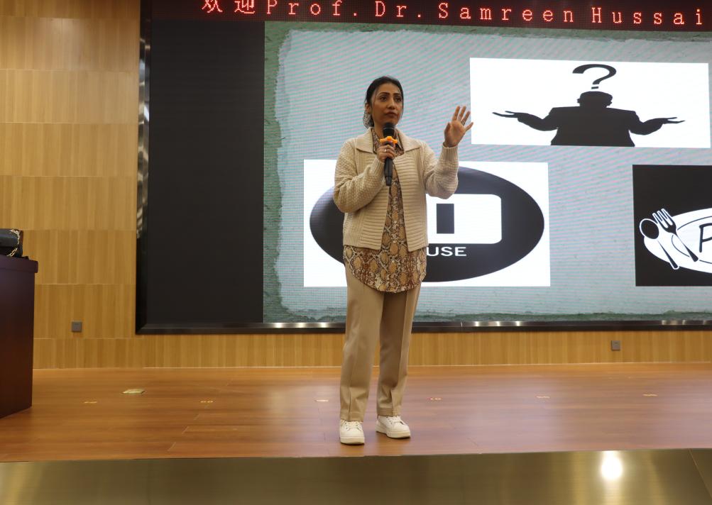 Samreen Hussain教授利用电影片段引入人工智能(AI)的概念,迅速吸引了同学们的注意力。她通过和同学们赏析电影情节,与同学们一起回顾了人工智能的发展历程,讲解了人工智能在各个领域的运用和进展,分析了人工智能、GhatGpt等技术存在的意义,对现代社会发展带来的好处和弊端,并对人工智能的未来做出展望。