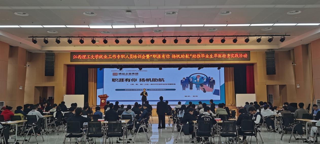 在三江校区三实楼一楼多功能厅举办就业工作专职人员培训会暨“职涯有你 扬帆助航”助推毕业生华丽转身实践活动。本次活动由国家人力资源管理资深专家王颖老师主讲,赣州校区各学院就业辅导员与部分毕业生参加。
