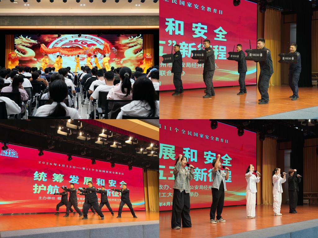 联合赣州市经开区党政办、赣州市公安局经开分局在三江校区东园三实楼共同举办《统筹发展和安全 护航“十五五”新征程》主题知识竞答活动,活动以“文艺展演+有奖知识抢答”的创新形式,为现场 300 余名师生带来了一堂生动深刻的国家安全“公开课”。